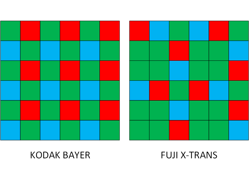 | Filtr mozaikowy (CFA) | Bayer | X-Trans |