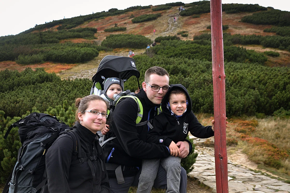 Ponieważ lubimy wyzwania i miewamy dość nietypowe pomysły na aktywny wypoczynek z dziećmi to wyprawa na Babią Górę była tylko kwestią czasu. I tak oto pewnego jesiennego ranka wraz z 4,5 letnim przedszkolakiem, 1,5 rocznym szkrabem i obstawą dziadków wyruszyliśmy na szlak z Przełęczy Krowiarki. Wycieczka zajęła nam zdecydowanie więcej czasu niż informują znaki, co w przypadku wędrówek z dziećmi jest zupełnie normalne, przy czym nasz Michał całą drogą przeszedł sam o własnych siłach. Wojtek „wędrował” w nosidle, co w jego wieku jest zupełnie normalne. Ale najważniejsze było to, że doszliśmy na szczyt (wędrując Percią Akademików) i zeszliśmy przed ulewą, która tego popołudnia nieoczekiwanie przeszła nad Zawoją. Mam nadzieję, że kiedyś uda nam się zdobyć jej szczyt ponownie, ale tym razem o wschodzie słońca i oczywiście z dziećmi.